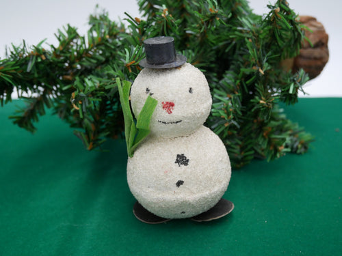 Gammel snemand med sukkerpynt og sort hat