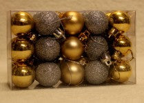 30 små julekugler plastik guld og sølvfarvede 3 cm