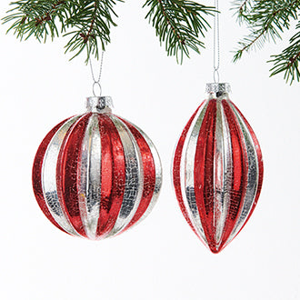 Glakugler rød og sølv stribet