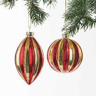 Glakugler rød og guld stribet