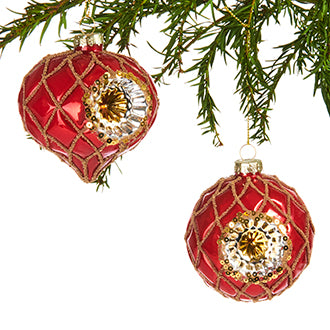 Røde glaskugler med refleks og deco