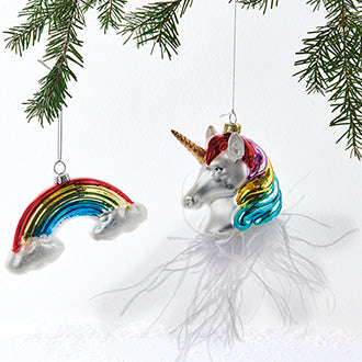 Julekugle regnbue og enhjørning sæt