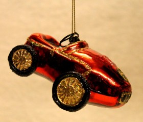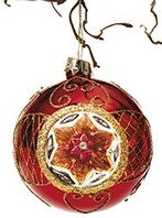 Rød glaskugle reflektor med guldmønster
