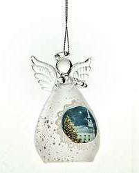 Glas engel med motiv kirke til ophæng