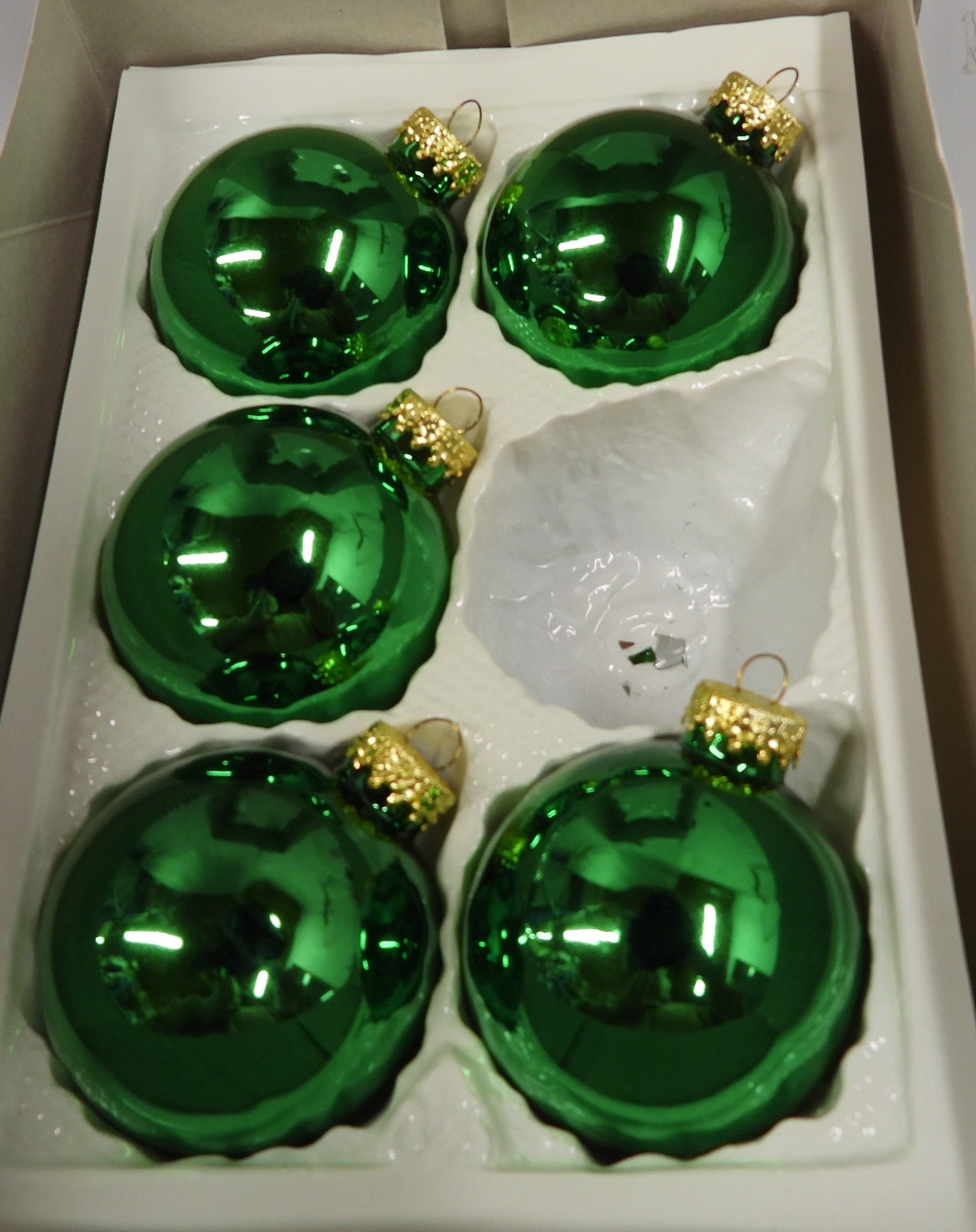 5 grønne glaskugler blanke Ø = 5,5 cm