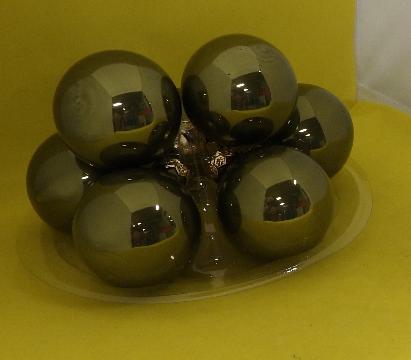 6 olivengrønne glaskugler Ø = 5,5 cm