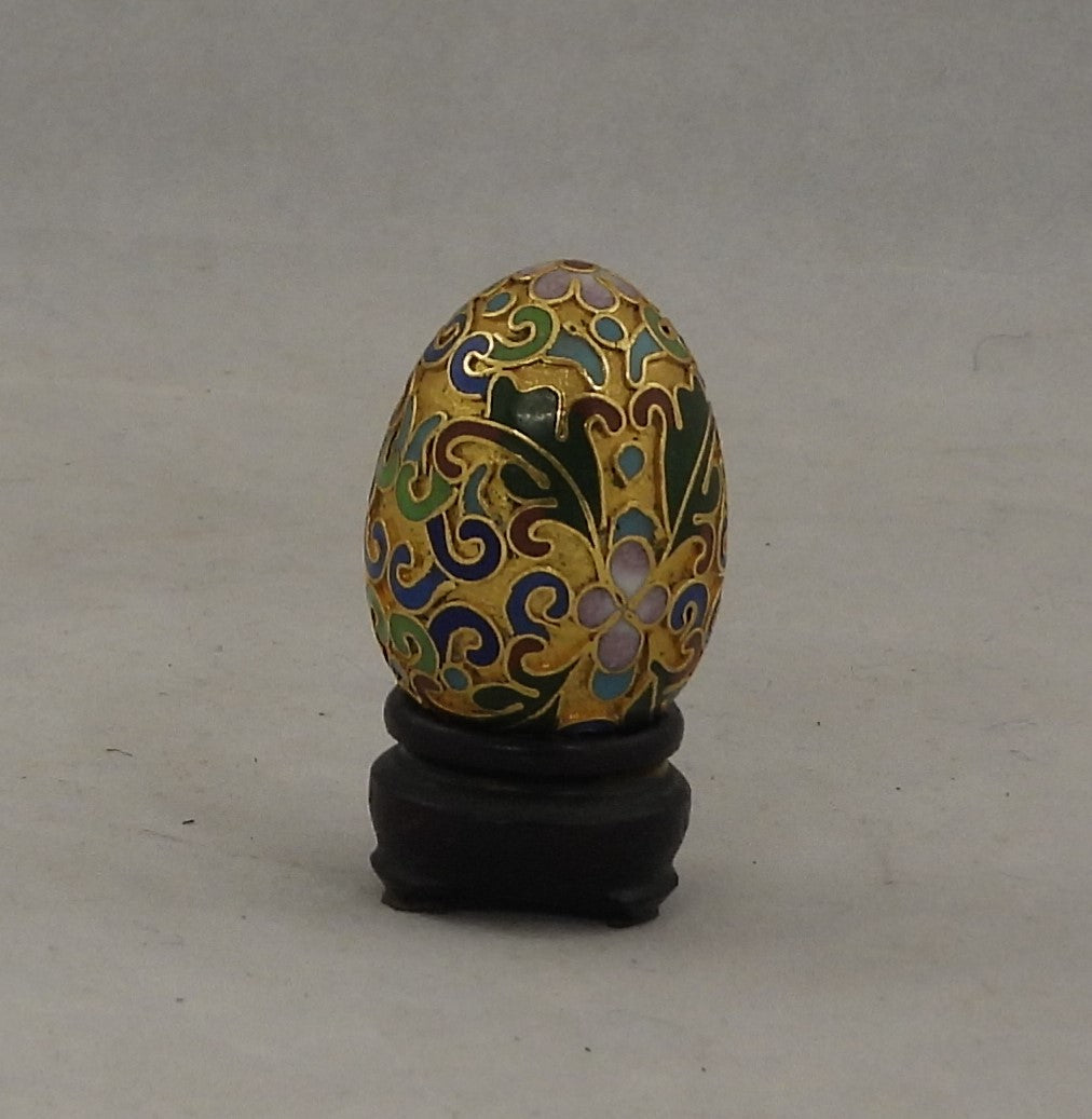 C loisonne æg 6,1 cm højt sort bundfarve gule blade i bunden